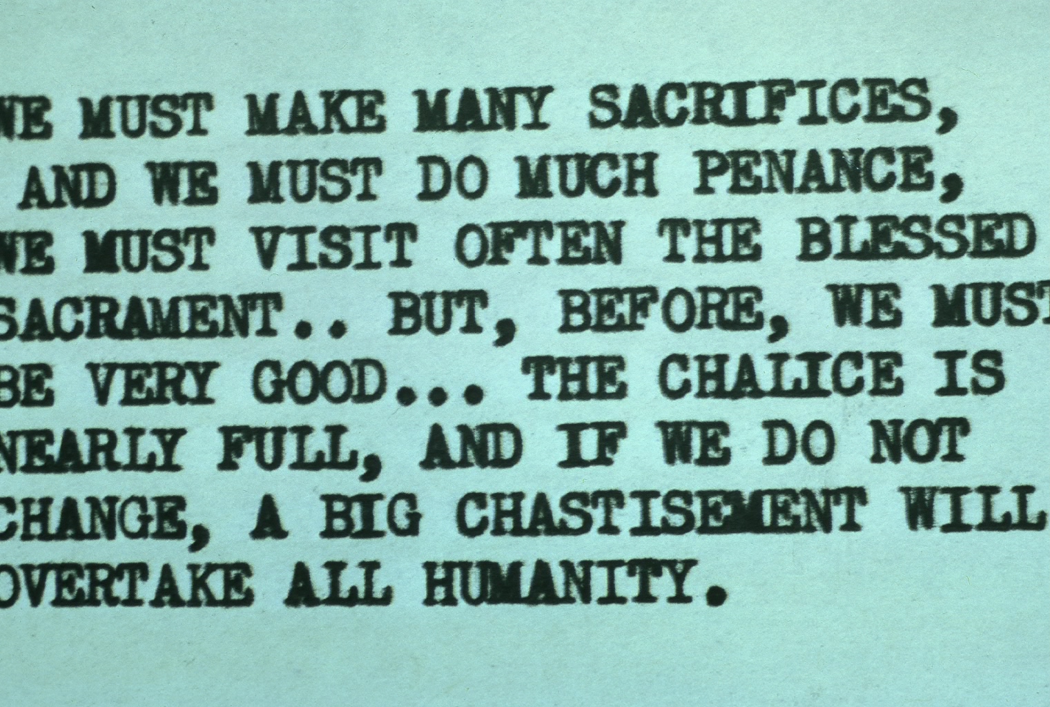 go because there is no one to make reparation for them". "The Chalice is nearly full" This is a Marian